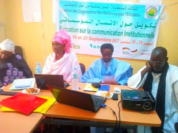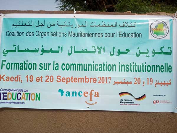 نظم ائتلاف المنظمات الموريتانية من أجل التعليم بمدينة كيهيدي عاصمة كوركول ورشة تكوينية حول الاتصال المؤسساتي يومي 19 و 20 سبتمبر تحت إشراف نائب الأمين العام للائتلاف السيد امباي ممدو وعضو مجلس إدارته المكلفة بالتعليم العالي والثانوي السيدة تبرا با. وتدخل هذه الورشة في إطار إشراك أعضاء منسقيات الائتلاف في ممثلياته الجهوبة في مضامين الورشة المنظمة تحت نفس العنوان بالعاصمة نواكشوط في يوليو الماضي بالتعاون مع مجموعة من الشركاء من بينهم التعاون الألماني على وجه الخصوص.