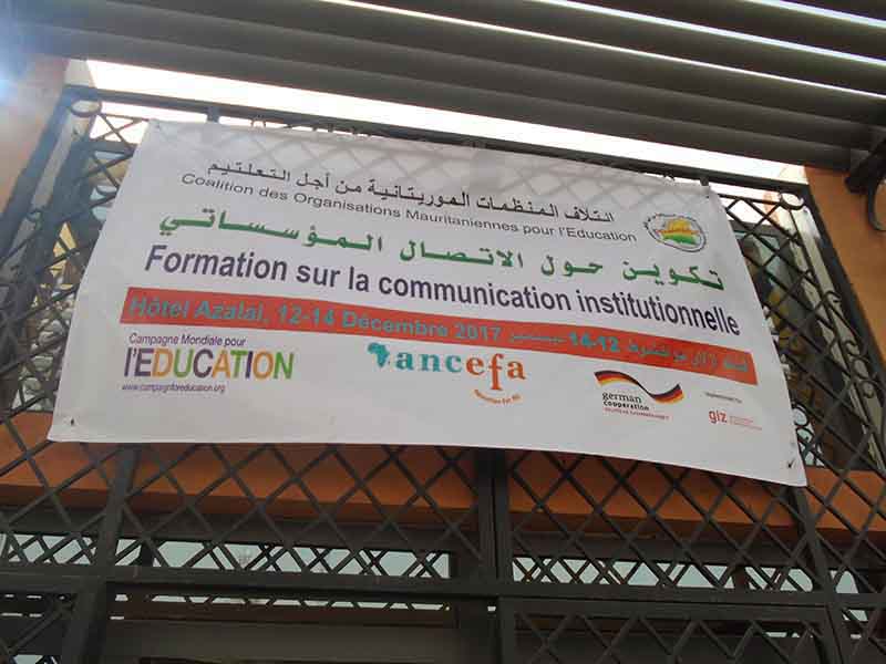 Un atelier de formation sur la communication institutionnelle a été organisé par la Coalition des organisations mauritaniennes pour l’éducation les 12, 13 et 14 septembre courant à l’hôtel Azalay Marhaba à Nouakchott, la capitale du Pays. Ont pris part à cet atelier, des membres de la Coalition à Nouakchott, en plus de représentants des Associations de parents d’élèves membres de la Fédération des Associations de parents d’élèves au nivea de la capitale.